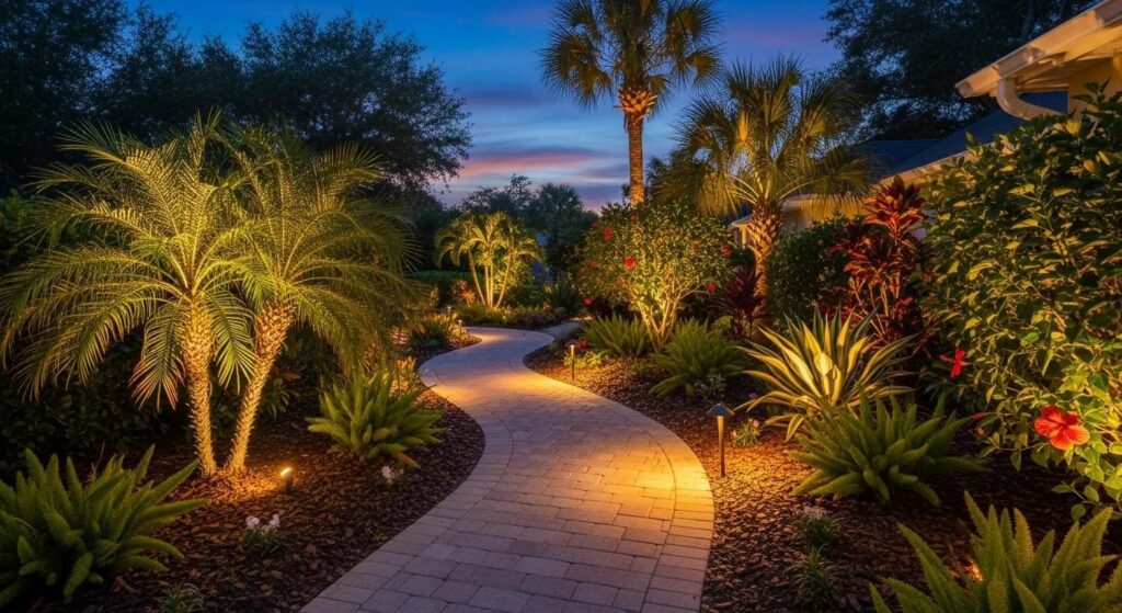 Pathway lighting guides guests and reduces trip hazards, while low, warm garden lights reveal textures and focal plants without overpowering the scene. Using efficient LED fixtures gives you reliable visibility plus long runtimes and lower energy use — a practical and attractive choice for Tampa yards.